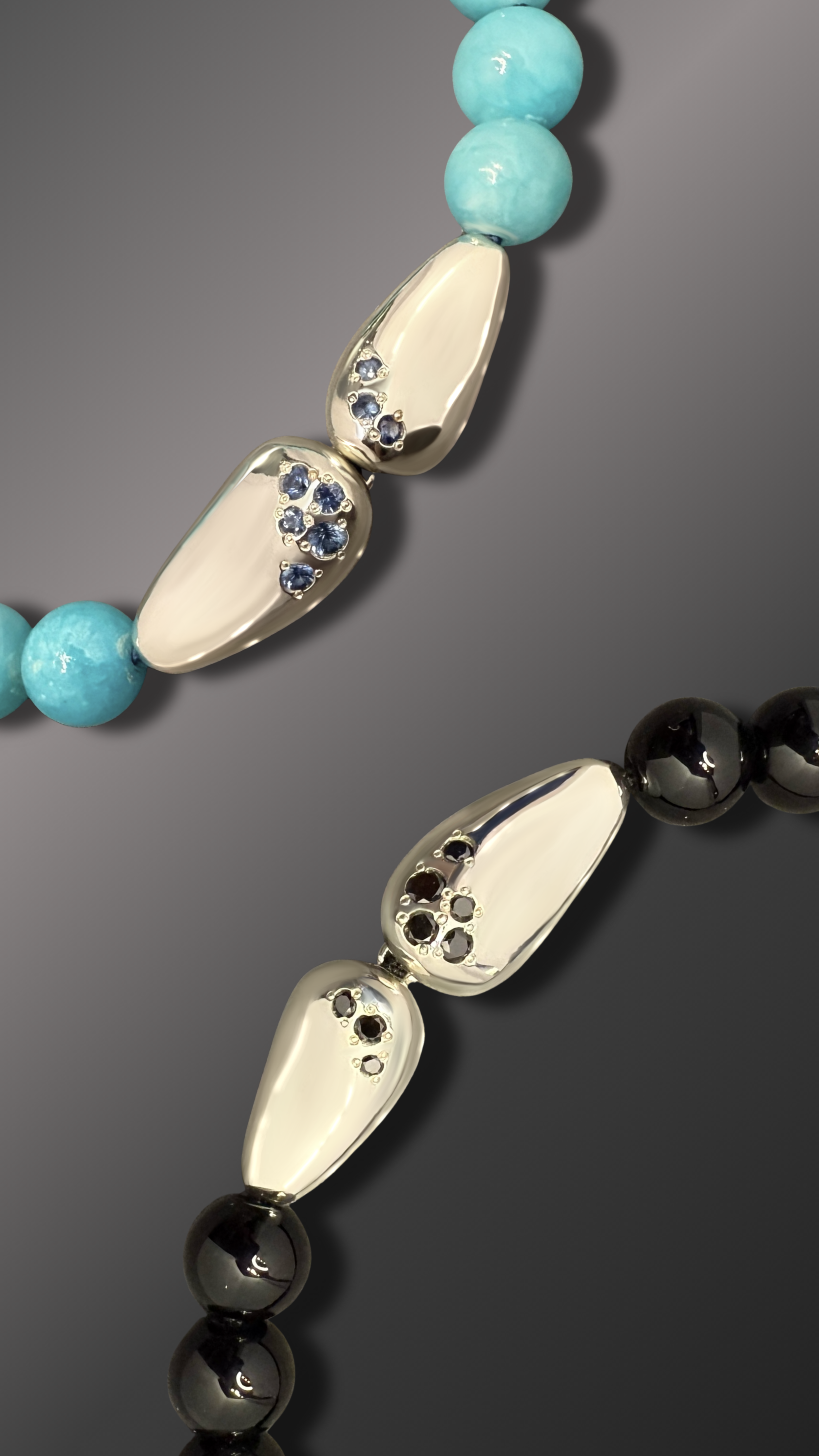 Réalisées avec des matières naturelles, éthiques et précieuses, soigneusement sélectionnées pour leur beauté et leur qualité, nos créations allient harmonie et raffinement.